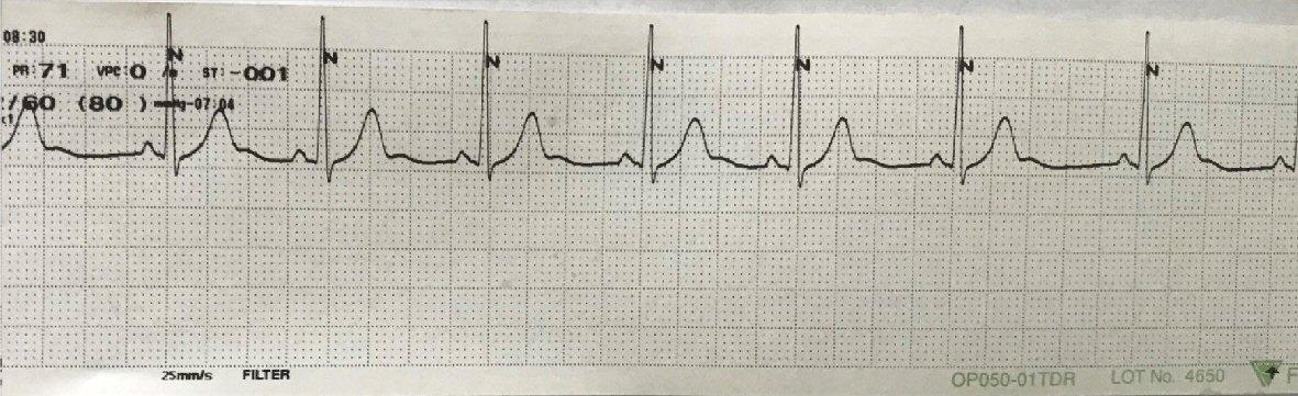 ![]() Click for large image | Figure 3. ECG on discharge (lead: II). ECG: electrocardiogram. |
